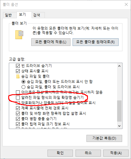 (파일 탐색기의 폴더 옵션에서 '알려진 파일 형식의 파일 확장명 숨기기' 항목을 해제하고 보면 확인할 수 있다.)