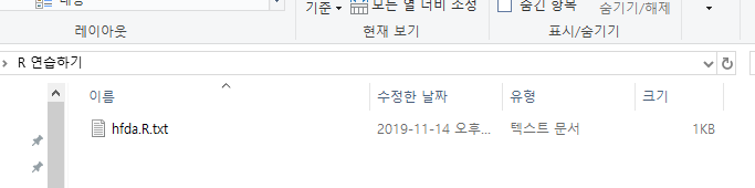 파일의 이름이 .R로 끝나도록(hfda.R) 파일 확장자 변경한다.
