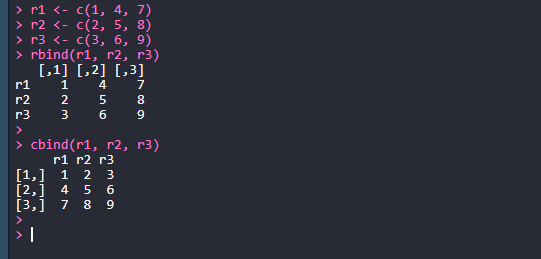 > cbind(r1, r2, r3) # cbind : 열을 기준으로 결합