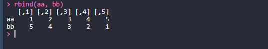 rbind( )는 행(row)을 합치기 위한 함수다. 합칠 대상이 되는 데이터의 열 개수는 동일하여야 한다.