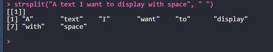 > strsplit("A text I want to display with space", " ") # 공백을 단위로 나눈다.