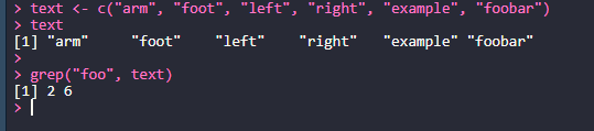 > text <- c("arm", "foot", "left", "right", "example", "foobar")