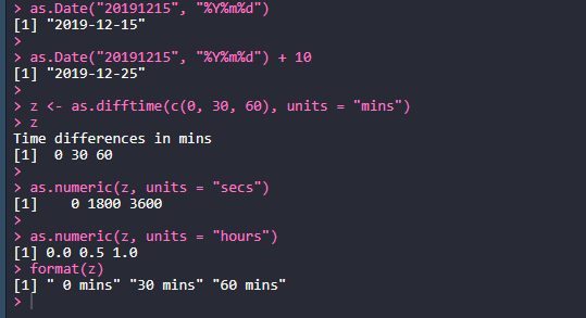 > z <- as.difftime(c(0, 30, 60), units = "mins")