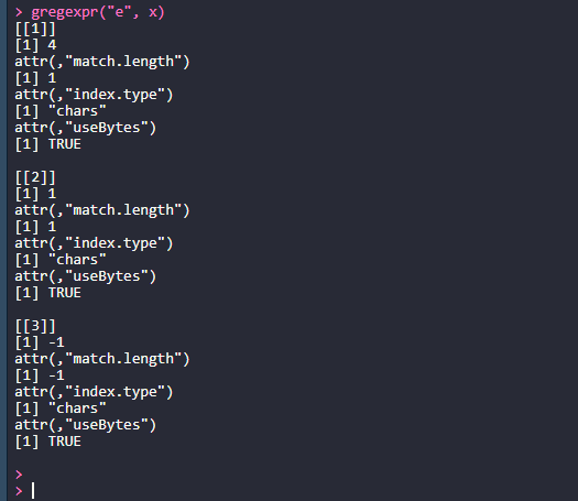 grepexpr( ) : 문자형 데이터 중 정의된 문자의 위치를 출력(모두)