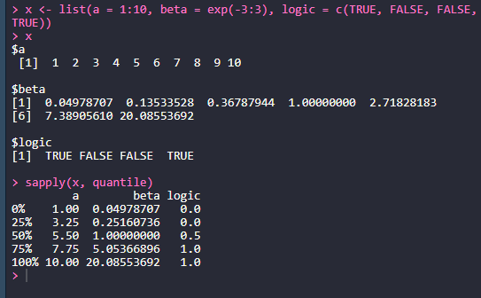 > lapply(x, quantile)