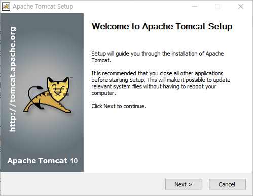 친절하게 exe 파일이 다운로드 된다.(apache-tomcat-10.0.18.exe)