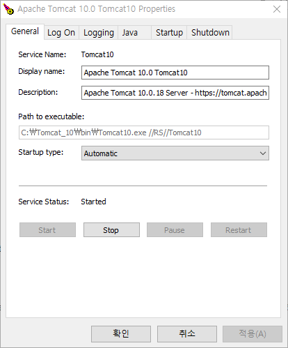 Windows Service Installer 다운로드 (https://tomcat.apache.org/download-10.cgi)