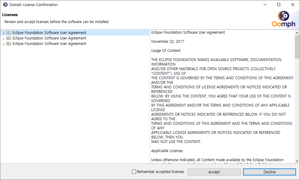 설치가 완료되면, 인증창이 열리고, 인증을 확인하면, Eclipse를 재시작 한다.