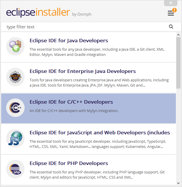 GoClipse로 넘어가기 위한 단계이므로 Eclipse 여러 패키지 중 C/C++ Developers를 선택했다.