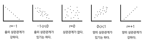 - 절대값이 0에 가까울 수록 선형관계가 없고, 절대값이 1에 가까울 수록 선형 관계가 있다는 것을 의미한다.